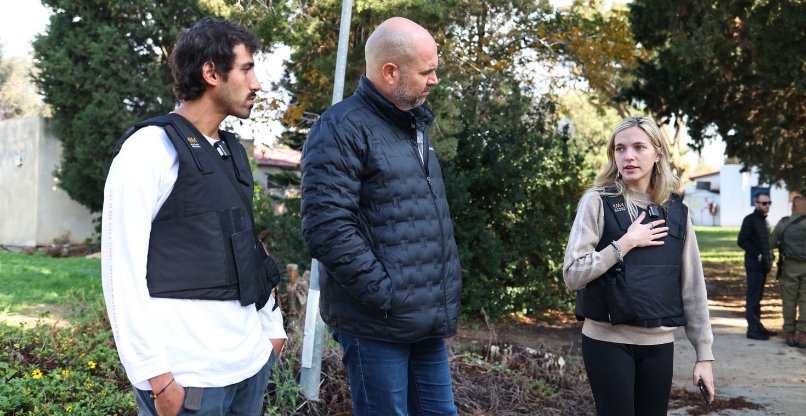 השלושה נפגשו עם רפאלה טרייסטמן ורפאל צימרמן, עולים חדשים מברזיל, אשר ניצלו ממסיבת הנובה שנערכה בקיבוץ רעים, אשר שיתפו עימם את סיפורם: "ברחנו מהרקטות למרחב מוגן ציבורי. 40 איש נדחסו לתוכו. באיזשהו שלב המחבלים הגיעו. בהתחלה הם זרקו פנימה גז ואחרי זה התחילו לירות באנשים. העמדנו פני מתים מתחת לגופות. הדבר הראשון שחשבתי עליו הוא שאני הולכת למות כיהודיה בשואה, כמו המשפחה שלי", אמרה רפאלה.