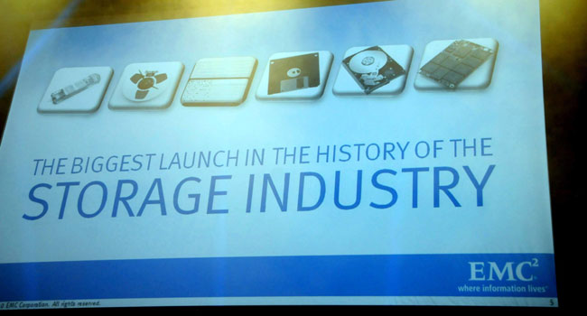 41 מוצרים ביום אחד. ההכרזה הגדולה ביותר בתולדותיה של EMC, הטוענת גם להכרזה הגדולה ביותר בהיסטוריית האחסון בכלל, נערכה בשבוע שעבר ב-3 יבשות: אמריקה (ניו-יורק), אירופה (לונדון) ואסיה (סינגפור). ג'ו טוצ'י, המנכ"ל, ופט גלסינגר, סגנו למעשה, נדדו נגד כיוון השמש מעיר לעיר והציגו את ההכרזה הטכנולוגית הגדולה שלהם, שלוותה במתקפה שיווקית קטנה לא פחות על כל המתחרים.