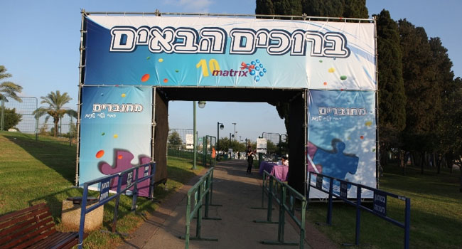 השלט המברך את עובדי מטריקס בבואם לאמפי-פארק ברעננה