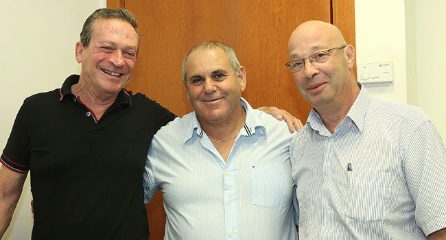 מימין: דורון כהן מנכ"ל בינת סמך, יעקב ברוש, מנכ"ל עמידר, יהודה זיסאפל, נשיא קבוצת רד-בינת ויו"ר איגוד תעשיות התוכנה והאלקטרוניקה