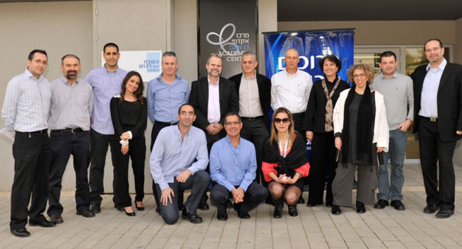 מנהלי האגף מערכות מידע ותפעול יחד עם מרצים אורחים ומארגני כנס פתיחת שנת 2012. שורה עליונה, מימין: עפר קריצ'מן, בוריס קוגן, עירית צורף, ענת ויזנר, שי שרגל, רמי שפייר, רונן זרצקי, גלעד מיניקס, שירון אדיבי, עמית פלד, עובד ברלוביץ ורם גב. שורה תחתונה מימין: סיגל ברוך, משיח בן-יהודה ואמיר הורוביץ