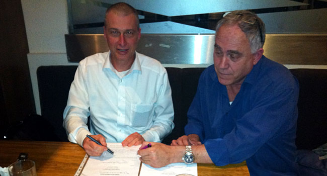 משמאל: שי שרגל, מנכ"ל RBS PROJECTS, חותם על ההסכם עם מנכ"ל היחידה ללימודי חוץ של הטכניון