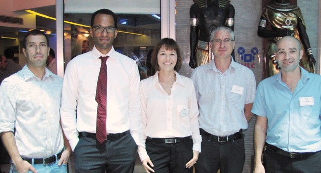 מימין: עופר גרונר, מנהל מכירות BO במטריקס מוצרי תוכנה; בועז גודוביץ', מנהל מוצר BO במטריקס מוצרי תוכנה; תמר פינקל, מנהלת תחום OEM בסאפ ישראל; פריץ פולטס - מנהל ה- Pre-sale באזור EMEA, סאפ; וחנן ברקו, מנהל תחום מובייל בצוות ה-Pre-sale בסאפ ישראל
