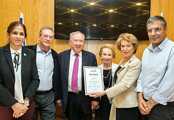 מימין: ח"כ פרופ יוסי יונה; נינה ויינר, נשיאת קרן אייסף ומייסדת שותפה שלה, ד"ר פולט רוז וג'ו רוז, חברי הנהלת הקרן; יהודה זיסאפל, נשיא קבוצת רד-בינת; וח"כ מרב בן ארי. צילום: עופר עמרם