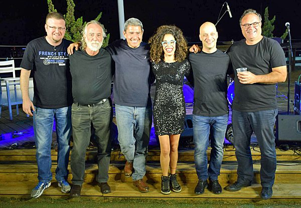 חברי להקת הקומה השלישית. מימין: אלי חסון (חצוצרה), אלון ממלוק (חליל צד), הדס פרמינגר (שירה), מוטי גוטמן, מנכ"ל מטריקס (פסנתר), יהונתן רוזנטל (גיטרה בס) ויקי זומרשטיין (תופים). צילום: הדר צדקה חזן