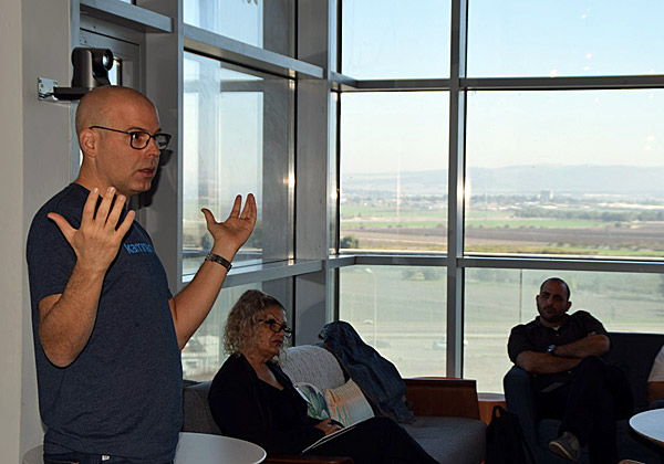 דני גולן, מייסד ומנכ"ל קמינריו, פוגש את חברי מועדון C3 של אנשים ומחשבים על רקע נוף עמק יזרעאל. צילום: אורן בסון