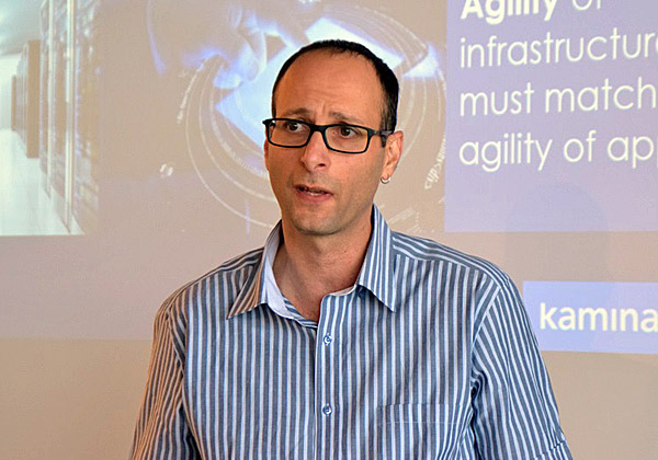 אלדד עומר, מנהל מחלקת תשתיות מחשוב באיילון ביטוח, מציג את סיפור יישום הפתרון K2 של קמינריו בחברה. צילום: אורן בסון