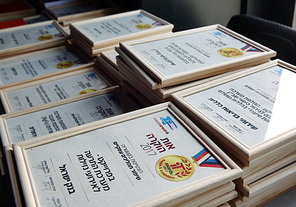 רגע לפני החלוקה: התעודות מוכנות על השולחן. צילום: ניב קנטור