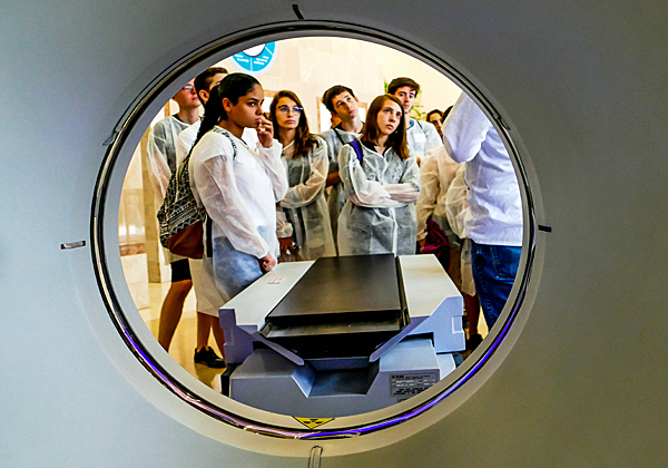 התלמידים שומעים אודות הטווין CT של פיליפס. צילום: צבי רוגר