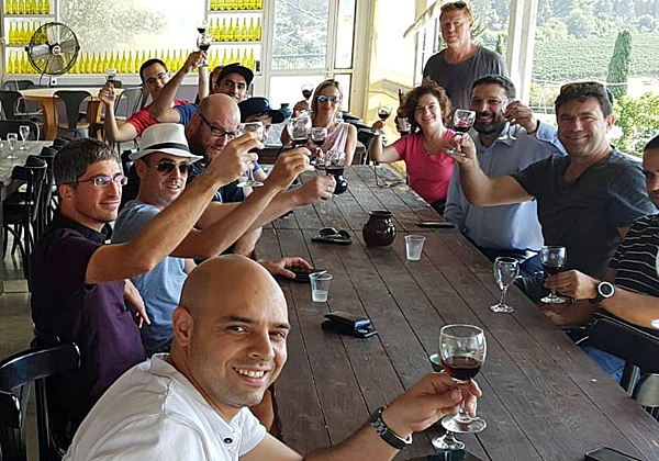 חברי הצוות טועמים יין ביקב של קיבוץ צובה. צילום: יח"צ
