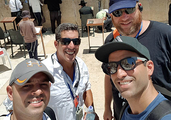 צוות המכירות של אינפינידט בכותל: ניר מליק, מנהל מכירות תחום הטכנולוגיה APJ; אסף יהב, מומחה מערכות אחסון; אופיר עקיבא, המדריך; וראם חזן, מנהל מכירות תחום הטכנולוגיה בישראל ובאפריקה. צילום: יח"צ