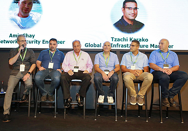 פאנל לקוחות. מימין: עמיר שי, מהנדס אבטחת רשת בכיר ב-EZBob; צחי קרקו, מנהל תשתיות IT גלובלי בסייברארק; שלומי ישי, מנהל תשתיות באיתוראן; יוסי יחזקאל, אחראי תפעול בתי חולים ולשכות בריאות במשרד הבריאות; אלמוג ניסים, מנהל תשתיות בסאפיינס; ויוחאי רוזנבאום, CTO ומנהל מחלקת תשתיות מחשוב ותקשורת בפז. צילום: ניב קנטור