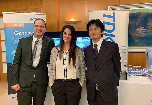 מימין: יאסונורי קומורו, TDK; מורן קבסו, מנהלת מרקום ב-TDK-Lambda; ויריב עיני, סמנכ"ל ב-TDK-Lambda. צילום: באדיבות החברה