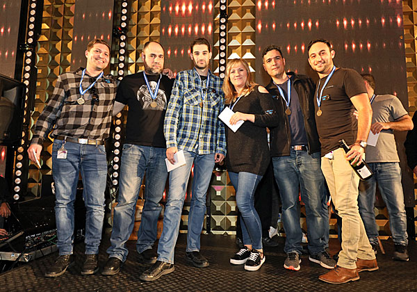חלק מהזוכים במשחק המאפיה של עובדי KLA-Tencor: אלעד ורמן; שרון בראונשטיין; סתיו גולדצברג; ילנה גרפובה; אופיר מרי ודרור שלום. צילום: שרון אברהם