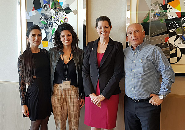 מימין: מאיר עמור, מנהל פעילות פייראיי בישראל; סנדרה ג'ויס, מנהלת מודיעין איומי הסייבר העולמית של החברה; הגר יעקובי, מנהלת תכנית Women 2 Women של עמותת בוגרי 8200; וסנז ישר, אנליסטית ראשית בפייראיי ישראל. צילום: איריס ויינשטיין