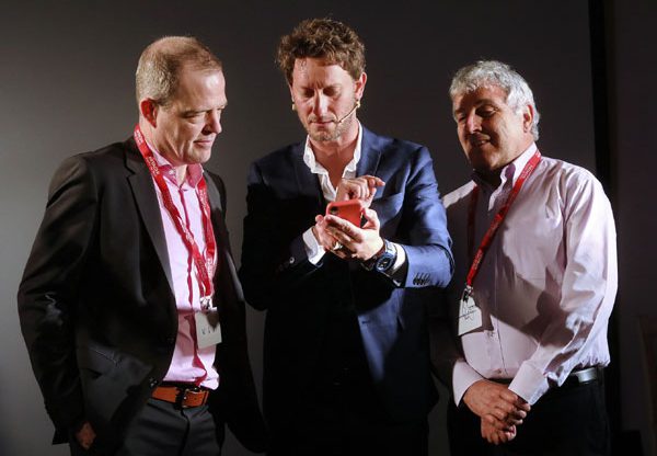 מימין: עמנואל ואזנה, יועץ בכיר ב-QCS; ליאור סושרד; ופטריק מארקי, סגן נשיא אזורי למרכז EMEA בהיטאצ'י ונטרה. צילום: ניב קנטור