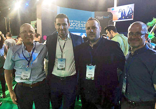 מימין: נדב שפיר, סמנכ"ל פיתוח עסקי בקבוצת יעל; אבי אביסרור מנכ"ל קלאודטק; גיום עטיה, מנהל שותפים בסיילספורס; ועמית דובר, משנה למנכ"ל קבוצת יעל. צילום: יח"צ