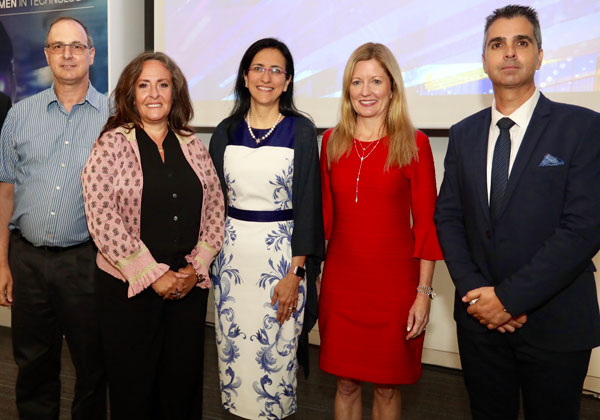 מימין: ליאור פוני, מנכ"ל דל טכנולוגיות ישראל; קארן קווינטוס סגנית נשיא בכירה וחברת הנהלת בחברה העולמית; ד"ר פטרישיה פלוריסי, סגנית נשיא ו-CTO גלובלית; אניה מונראד, סגנית נשיא בכירה ומנכ"לית למרכז ומזרח אירופה; ודן ענבר, מנכ"ל מרכזי הפיתוח בדל טכנולוגיות ישראל. צילום: ניב קנטור