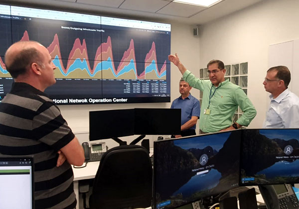 הבכירים מבקרים בחדר הבקרה הראשי של פלאפון. צילום: יח"צ משרד התקשורת