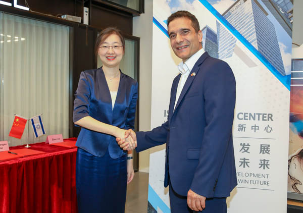 מימין: אילן מימון, מנכ"ל מרכז ישראל-ג'יאנגסו, ולי ליי, סגנית מנהל אזור ההיי-טק ווג'ין. צילום: רמי לוי