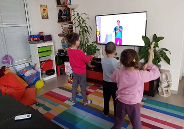 ילדי מלם תים צופים בהופעה המיוחדת "גילי בא לבקר" שאורגנה עבורם בצל הקורונה. צילום: יח"צ