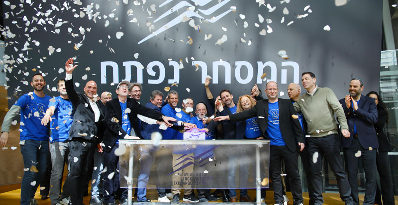 מנכ"ל הבורסה, איתי בן זאב, מנכ"ל אלעד מערכות, דגן הלוי, יו"ר החברה, אדיב ברוך, ובכירים נוספים לחצו בהתרגשות על הפעמון.