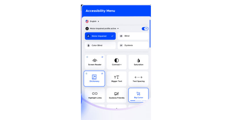 "פה", אמר איכר, "נכנס הפתרון שלנו. ניתן להוסיף את התוסף שלנו לאתר באמצעות שורת קוד אחת. באופן אוטומטי התוסף מאפשר המרה של עיקר תוכן האתר לזה שתואם את תקנים המקובלים בתחום, בלי להזדקק לתהליכי פיתוח מורכבים. התוסף שלנו מנתח בזמן אמת את האתר ומציע שיפורי נגישות למגוון לקויות: לקויות מוטוריות, עיוורון צבעים, קשיי ראייה, התקפים אפילפטיים, עיוורון, דיסלקציה, ליקויים קוגניטיביים, ADHD ועוד".