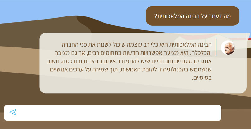 ממציאי הפיתוח ההיסטורי-חדשני הזה מסרו כי הצ'ט "מציע חוויה אינטראקטיבית ומעמיקה, שבאמצעותה ניתן להבין את מחשבותיו ורעיונותיו של בן גוריון, ושמאפשרת לציבור הרחב להיחשף אליהם ולבחון את הרלוונטיות שלהם למציאות המודרנית. זוהי הזדמנות נפלאה להתנסות בחוויה יוצאת דופן ולשאול את בן גוריון את השאלות שמעסיקות אותנו במציאות של היום".