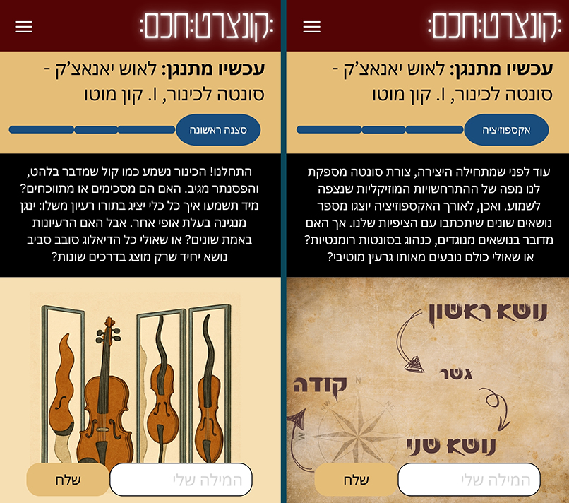 "בכניסה לאולם יהיה ברקוד. הקהל יתבקש לסרוק אותו וכך להיכנס לאפליקציה שלנו. לאחר הכניסה, האפליקציה תשאל אותך האם אתה מאזין מנוסה או חדש למוזיקה קלאסית, ועל פי התשובה היא תספק לך מידע בזמן אמת על מה שאתה שומע".