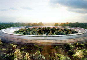 הקמפוס דמוי החללית של אפל (Apple), שמתוכנן להקמה ב-2016, קורם עור, גידים ותוכניות: על פי פרסומים, הוא עתיד להיראות כמו פארק ענק, שהשטחים הירוקים בו יהיו גדולים יותר מאלה הבנויים.