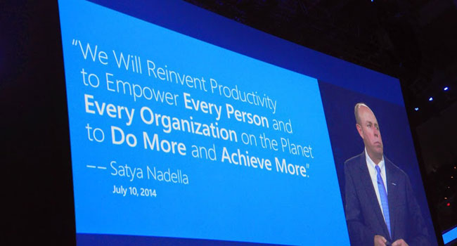 זו הפעם הראשונה מזה 12 שנה שסטיב באלמר, מנכ"ל מיקרוסופט שפרש מניהולה, אינו רועם יותר מעל הבמה, וגם כמובן שביל גייטס אינו בסביבה. אפשר להגיד כי זוהי מיקרוסופט חדשה לחלוטין מצמרת הנהלתה, אפילו בדרך שבה היא תופסת את עצמה.