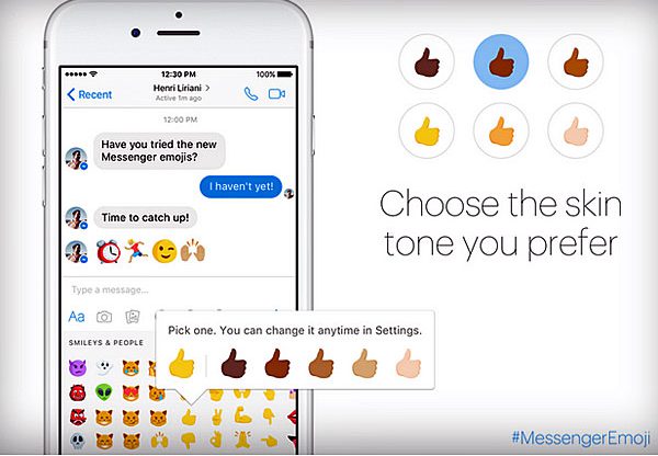 המסנג'ר של פייסבוק (Facebook Messenger) זכה אתמול (ד') לשיפוץ אימוג'י (Emoji) ולכמה עיצובים חדשים, תוך התמקדות במגוון ובגוון. חלק מכובד מהאימוג'ים החדשים כוללים אפשרות לבחירת צבע העור של המחווה – תמיכה שכבר הוספה ב-iOS בשנה שעברה ושטלפונים שעובדים על אנדרואיד (Android) אמורים לקבל בשלב מאוחר יותר השנה.