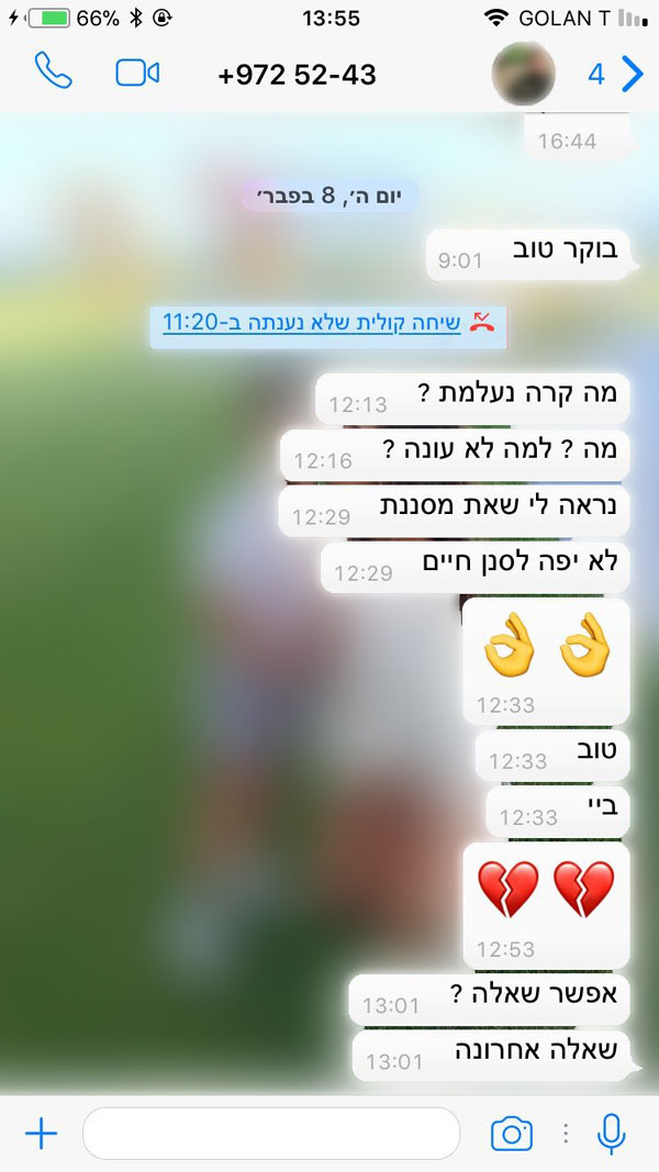התכתבות עם חמאטס בווטסאפ. צילום מסך: דו"צ.
