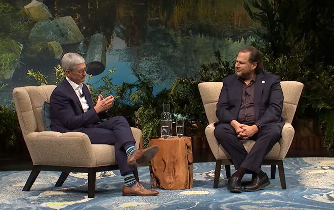 מנכ''ל אפל שוחח עם מארק בניוף, מנכ"ל סיילספורס, על במת כנס Dreamforce 2019 ● על ניידות ארגונים, על קיימות סביבתית, ועל מה שביניהם