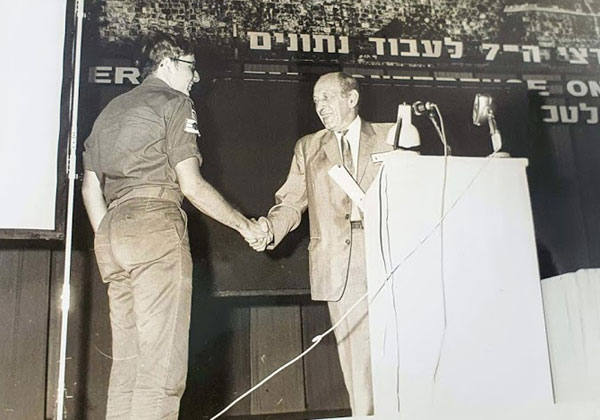סמ"ר מנחם שלגי מקבל את האות. אגב, בעמודו הראשון של הגיליון המודפס הראשון של אנשים ומחשבים, שיצא ב-18 בנובמבר 1981, פורסמה הכותרת "שלגי שב הביתה". זאת, לאחר שהוא חזר ארצה מרילוקיישן באוסטרליה מטעם אמדוקס