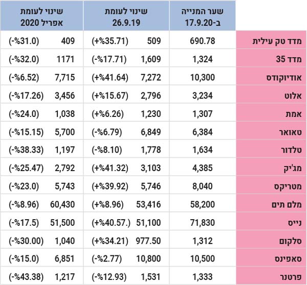 ראש השנה והימים שבינו לבין יום הכיפורים הם זמן טוב לסכם את השנה, בכל שנה, אלא שהפעם זה קשה יותר, בגלל משבר הקורונה. לכן, אחלק בשורות הבאות את השנה לשני חלקים – עד שהמשבר החל להשפיע באופן בולט על הבורסה בתל אביב ולאחר מכן. כך, בעוד שבסיכום תש"ף מדד ת"א-35 ירד, כאמור, ב-17%, במחצית הראשונה שלה – בין ספטמבר 2019 למרץ 2020 – הוא עלה ב-7.3%. לעומת זאת, מדד ה-ת"א טק עילית נצבע בצבע הירוק של העליות בשתי התקופות: בשנה כולה הוא זינק, כאמור, ב-38%, ובמחצית הראשונה שלה – ב-43%. כלומר, מאז החל משבר הקורונה נרשמה התמתנות בעליית המדד הטכנולוגי של הבורסה בתל אביב, אם כי לא רבה.