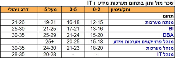כמה מרוויחים במקצועות ה-IT המרכזיים?