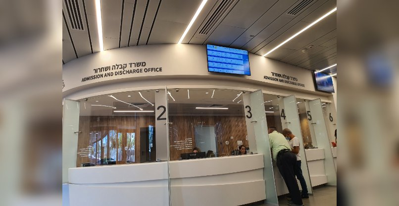 עמדת הקבלה באולם הכניסה לבית החולים החדש לרפואה דחופה באיכילוב. צילום: אנשים ומחשבים