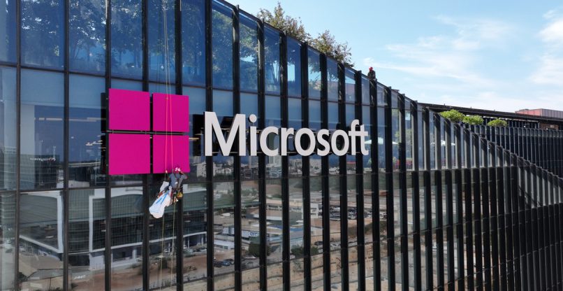 קמפוס מיקרוסופט בהרצליה עם הלוגו הוורוד. צילום: ניר הופמן