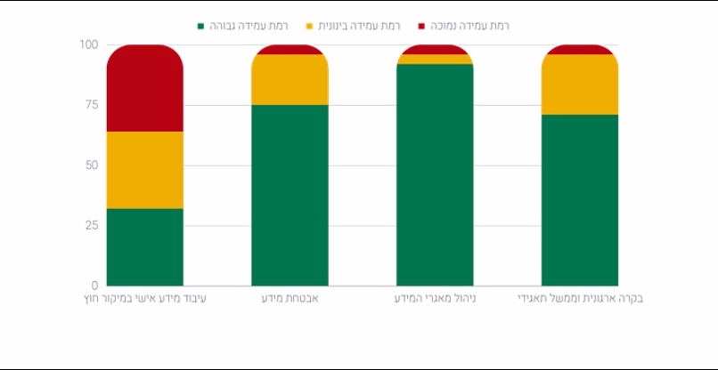 לדברי הרשות, כשני שליש מהסוכנויות (75%) עמדו ברמה גבוהה בהוראות חוק הגנת הפרטיות בנוגע לאבטחת מידע, 92% מהסוכנויות עמדו ברמה גבוהה בקריטריון של ניהול מאגרי מידע וכ-71% מהסוכנויות עמדו ברמה גבוהה בקריטריון של בקרה ארגונית. יחד עם זאת, רק 32% מהסוכנויות המשתמשות בשירותי מיקור חוץ לעיבוד מידע עמדו ברמה גבוהה בהוראות התקנות, המתייחסות לחובות החלות על החברות במקרים של עיבוד מידע אישי באמצעות מיקור חוץ.