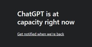 השירות לא זמין, בגלל עומס ביקוש. ChatGPT. צילום: לכידת מסך מאתר ChatGPT
