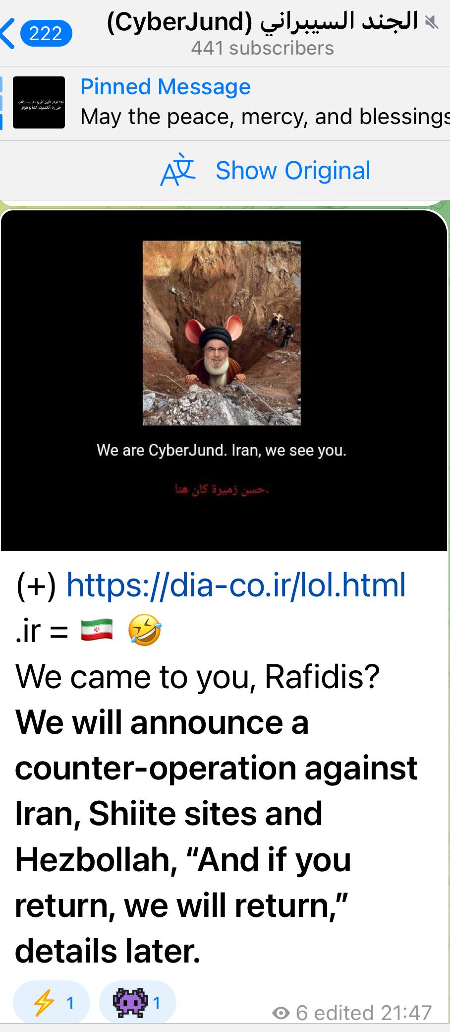 "בשם אלוהים, הנדיב והרחום ביותר", כתב אחד ההאקרים השותפים למסע, "הו המוני אומתנו הערבית והאסלמית. בעוד האויב ממשיך בתוקפנותו ובפשעיו. בעוד הוא מאמין באופן הזוי במערכותיו, אנו ב'התנגדות האלקטרונית' מכריזים על תחילתו של מבצע 'שחר החירות'. ביצורו (של האויב הציוני) לא יועיל לו והחומות האלקטרוניות שלו לא יגנו עליו. אנו מודיעים כי מחר יהיה שלב חדש במערכה הגלויה שלנו עם האויב, כאשר אנשינו החופשיים במרחב הסייבר יבצעו פעולה איכותית נגד מערכותיו הרגישות. זו תהיה מכה שתטלטל את ישותה ותחשוף את חולשתה מול הרצון האיתן (שלנו). מה שהכנו יגרום לאויב להבין שביטחונו (או, מצב האבטחה שלו) נמצא כעת בטווח האש שלנו, ושמרכזיו ומערכותיו לא יצאו מידינו. אנו מזהירים את האויב מפני זלזול בכוח הרצון שלנו, ומדגישים כי פעולה זו תהיה רק ההתחלה ואחריה יבוא הדבר החמור והגדול יותר, עד שיבין כי התקפותיו לא יעברו בלא דין וחשבון וכי שחר החירות עלה וכי יש לנו פגישה עם הניצחון. זהו מאבק של ניצחון או מות קדושים".