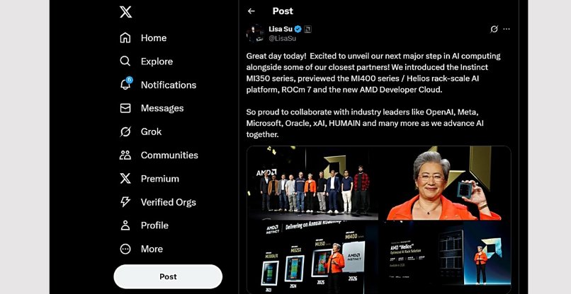 הפוסט של מנכ"לית AMD, ליסה סו. צילום: לכידת מסך מ-X