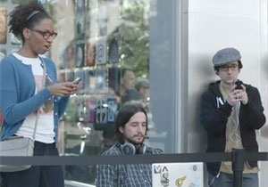 בעודם ממתינים בתור במשך שעות, מבחינים האנשים באישה היושבת על ספסל סמוך אליהם, כשהיא משתמשת במכשיר Galaxy S II של סמסונג. ועוד מישהו עובר לידם ומראה להם את המכשיר שלו (כמובן Galaxy S II) ומתרברב בו, תוך אזכור יתרונותיו: המסך הגדול והחד, מהירות דור-4, הדבר הגדול הבא, וכו'.
