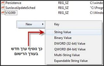 במיקום זה נוסיף ערך חדש על ידי לחיצה על מקש ימני ובחירה בחדש ולאחר מכן נבחר בערך מחזורת – לערך החדש ניתן את השם Ctfmon.