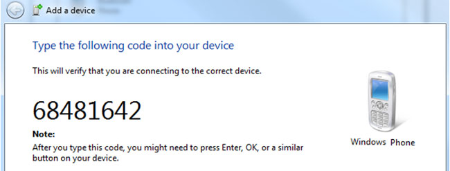 4. כעת מערכת ההפעלה תציג בפנינו את אשף החיבור בין ההתקנים. בכדי שהתקני בלוטות' ידעו לתקשר זה עם זה בצורה שוטפת, אמור להיות ביניהם קוד בכדי שמחשבים אחרים באזור לא יוכלו "להשאיל" את השליטה על המכשור המשתמש בטכנולוגיה זו. באשף חיבור ההתקנים, תציג בפנינו המערכת את הקוד שיש להזין במכשיר אותו אנחנו מעוניינים לחבר.