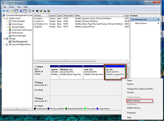 את החלק "העודף" שנוצר, נוכל להגדיר ככונן נוסף וכך למעשה ליצור שני כוננים שונים בגודל כולל של 300 ג'יגה-בייט. חשוב לזכור, כי על מנת להקטין את הכונן, עלינו למחוק מידע בנפח אותו אנחנו מעוניינים להקטין מהכונן. כמות המידע הפנוי תוצג לפנינו באשף עצמו, אך עדיף להכין את הכונן לפני תחילת התהליך.