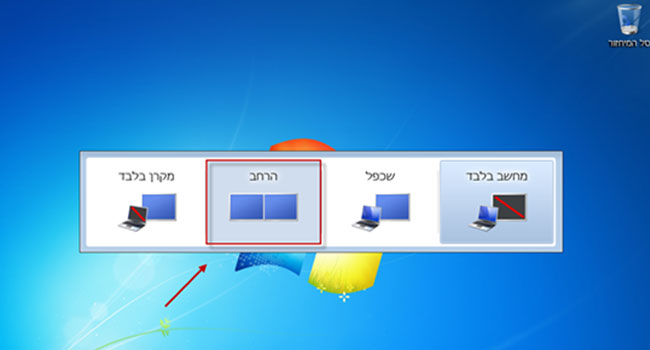 2. לחצו על מקש WINDOWS בצירוף האות P. בחלון שיופיע בחרו באפשרות הרחב.
