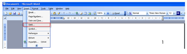 כדי להוסיף שדה בגרסה 2003 כל שעלינו לעשות הוא ללחוץ על הוספה>שדה: