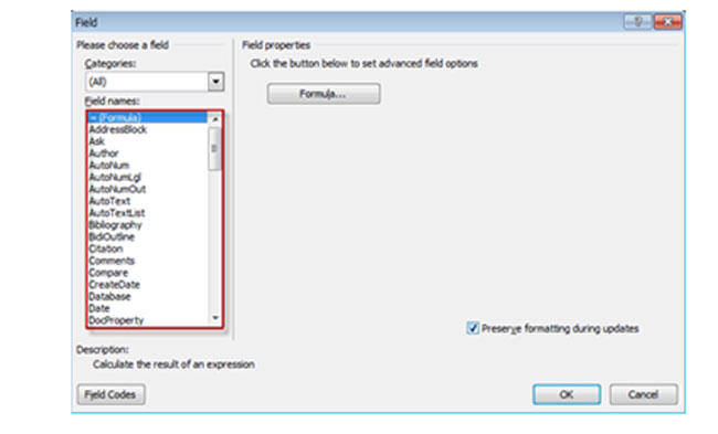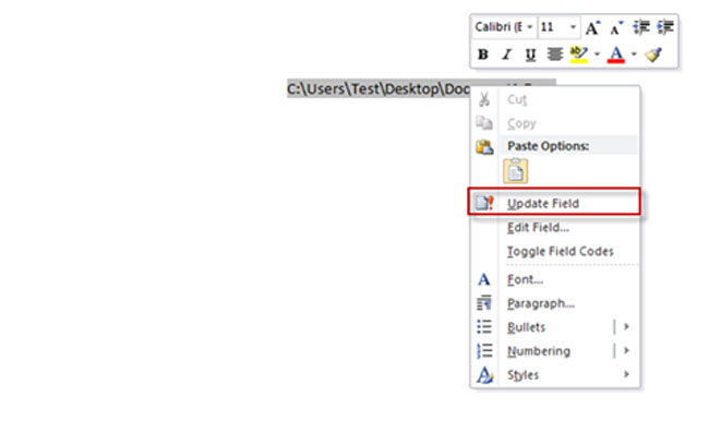 במידה והשדה אינו מתעדכן באופן אוטומטי כל שעלינו לעשות הוא לפתוח את המסמך וללחוץ על השדה "מקש ימני" ובתפריט שיוצג לפנינו עלינו לבחור באפשרות "עדכן כעת " והשדה יתעדכן לנתוניו הנוכחיים והמעודכנים.